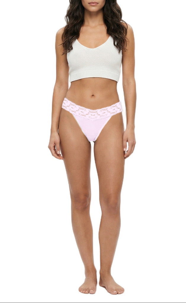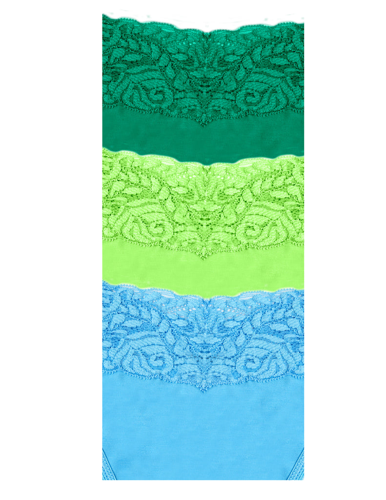 3 Pack Cotton Spandex Thong with Lace Waistband. This three‑pack thong delivers comfort, confidence, and great value. Crafted from a soft blend of 95% cotton and 5% spandex, each pair offers a smooth, flexible fit complemented by a delicate stretch lace waistband. The 100% cotton liner adds breathable comfort, making these thongs an ideal choice for effortless, everyday wear.